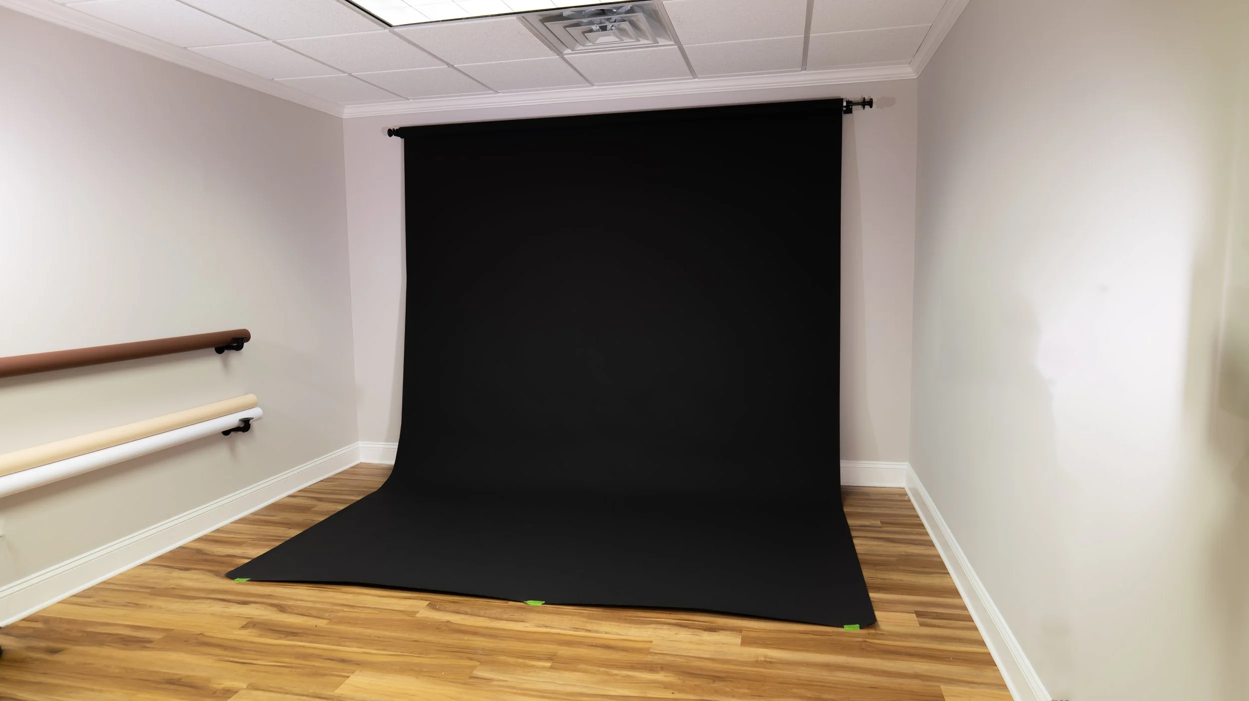 STUDIO J: a backdrop room with a mounted paper roll system in multiple color options—great for clean, studio-style content.